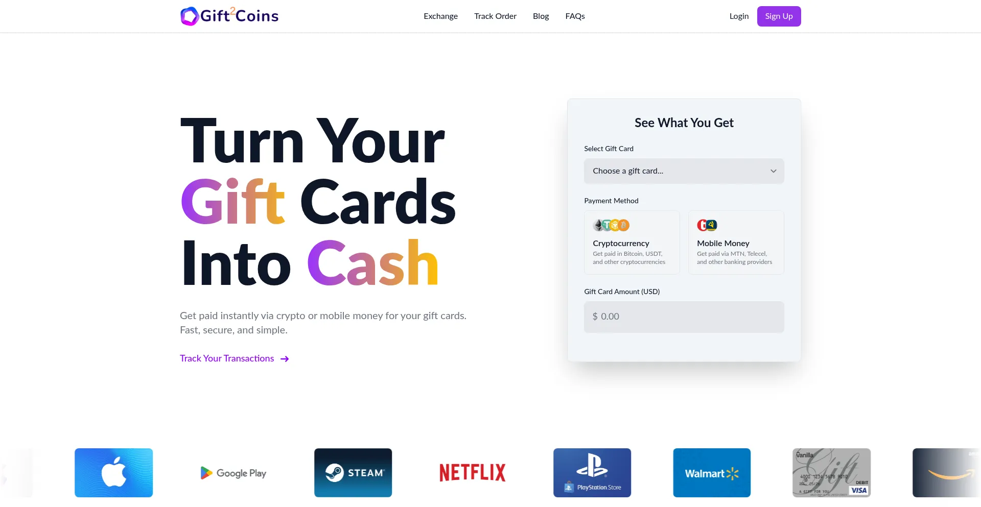 Sell Gift Cards for Cash & Mobile Money | Get Instant Payment - Gift2Coins