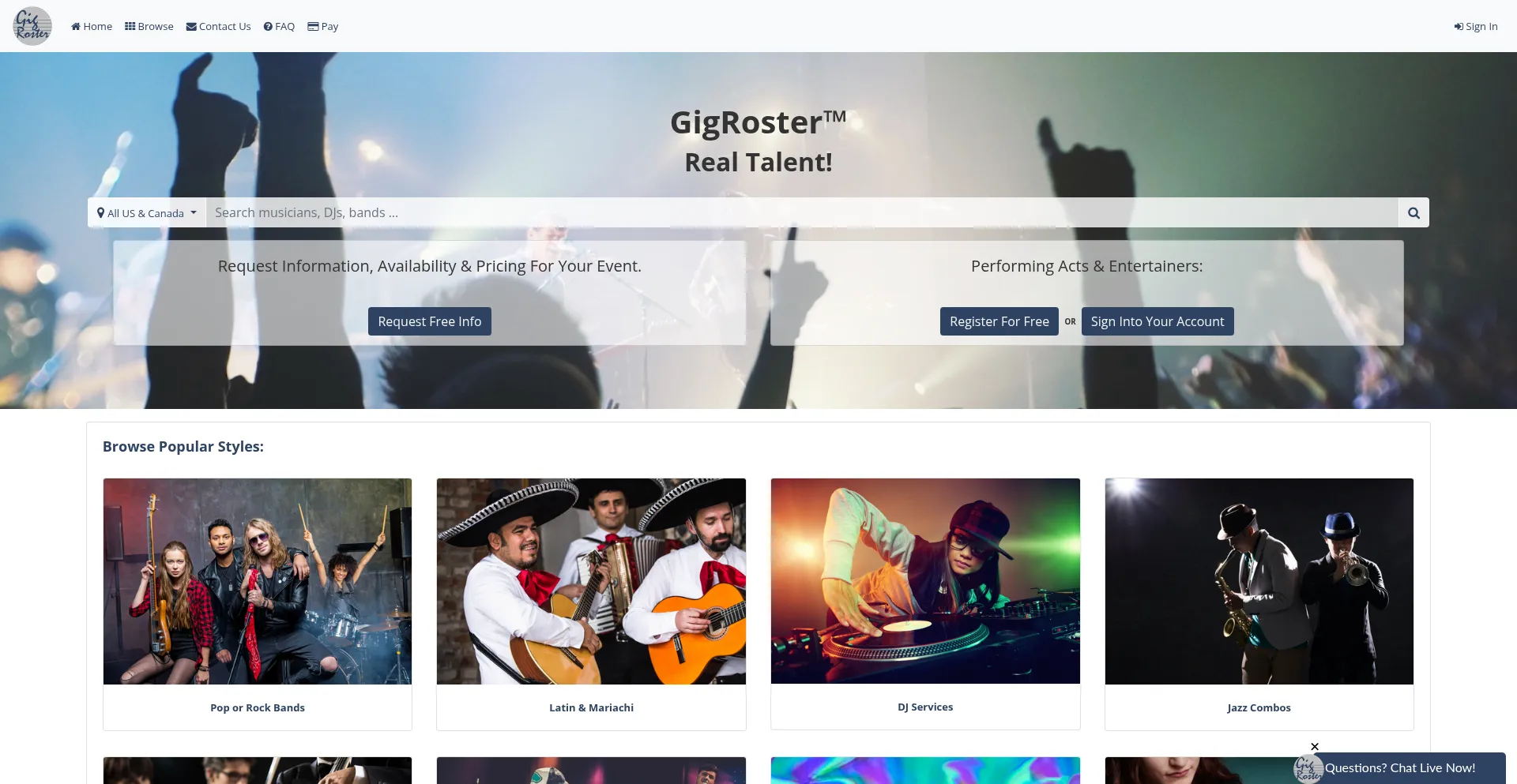 网站上存在社交媒体链接表明 gigroster.com 在社交媒体上维护官方账户,这是可信度和参与度的积极信号。