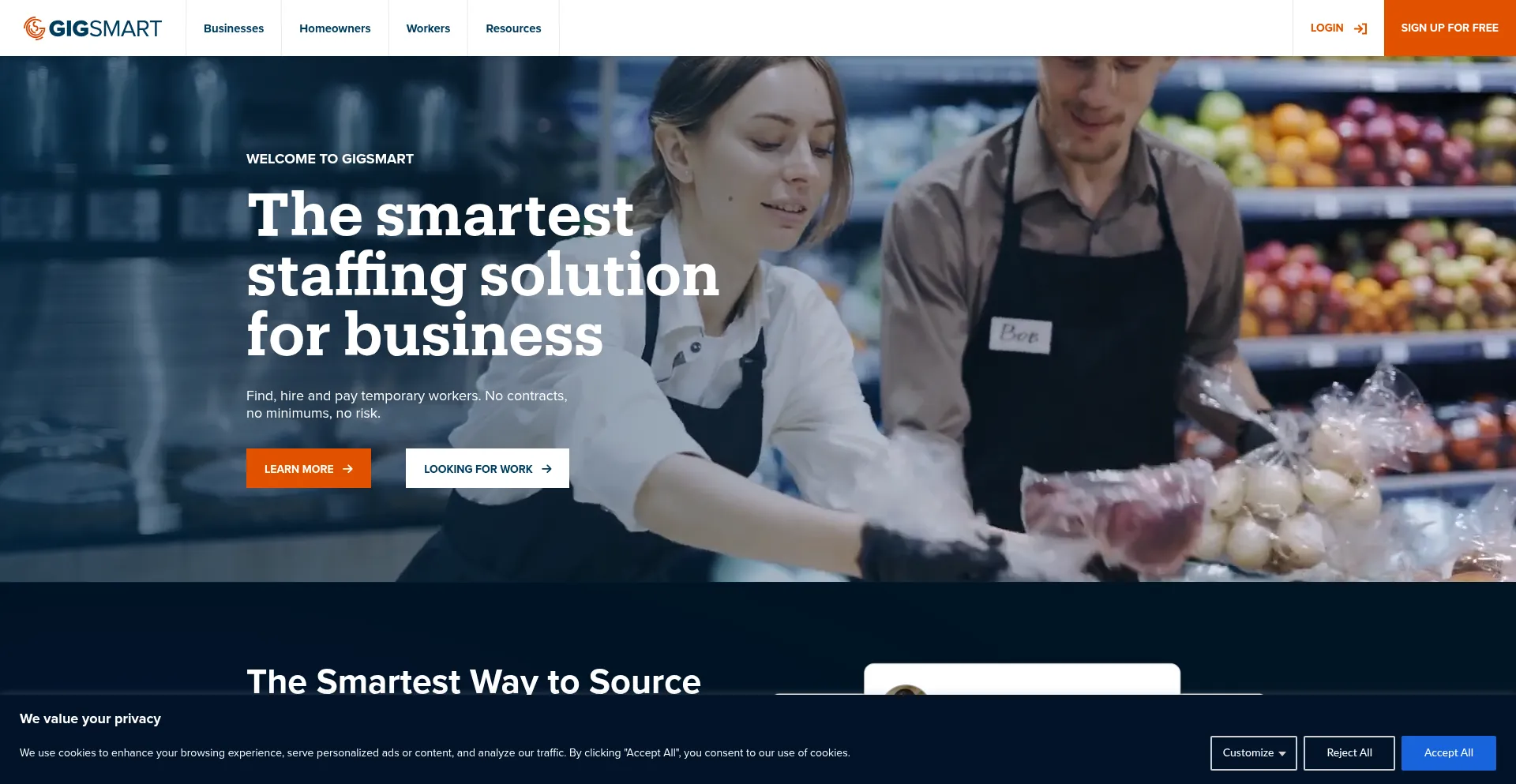 该网站实现符合GDPR或CCPA等隐私法规的cookie同意机制。这表明 gigsmart.com 遵守数据保护标准并为用户提供对个人数据收集实践的控制。