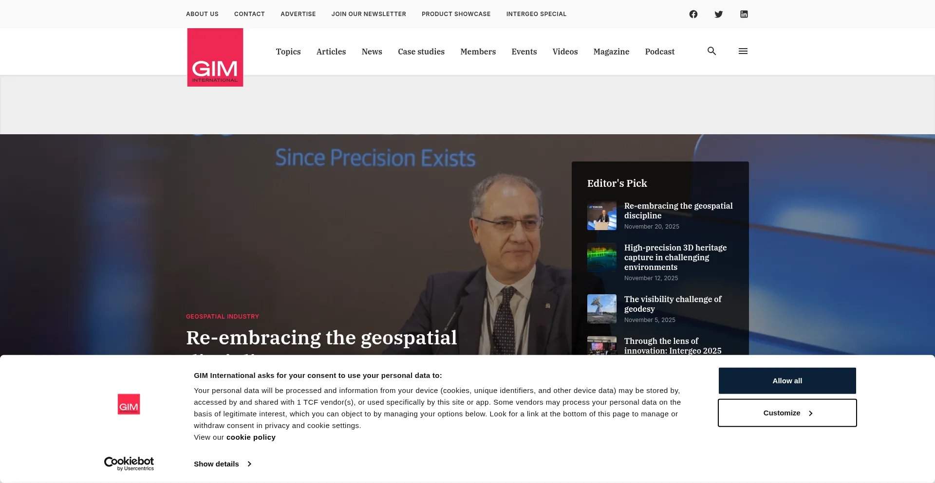GIM International is the quality global magazine for Geomatics professionals. News, events, jobs, companies, our free online magazine and more!