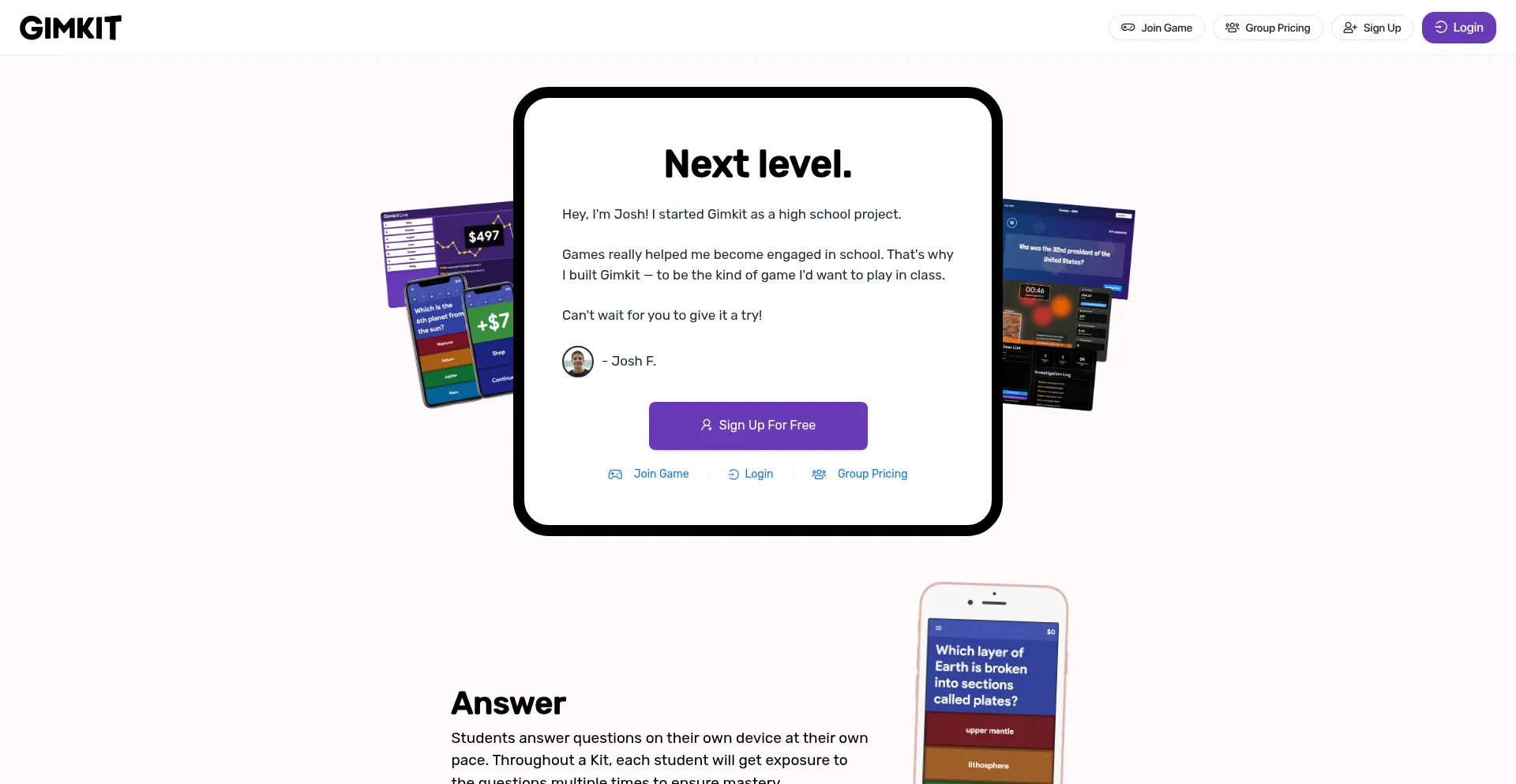Gimkit is a game show for the classroom that requires knowledge, collaboration, and strategy to win. Get started for free!