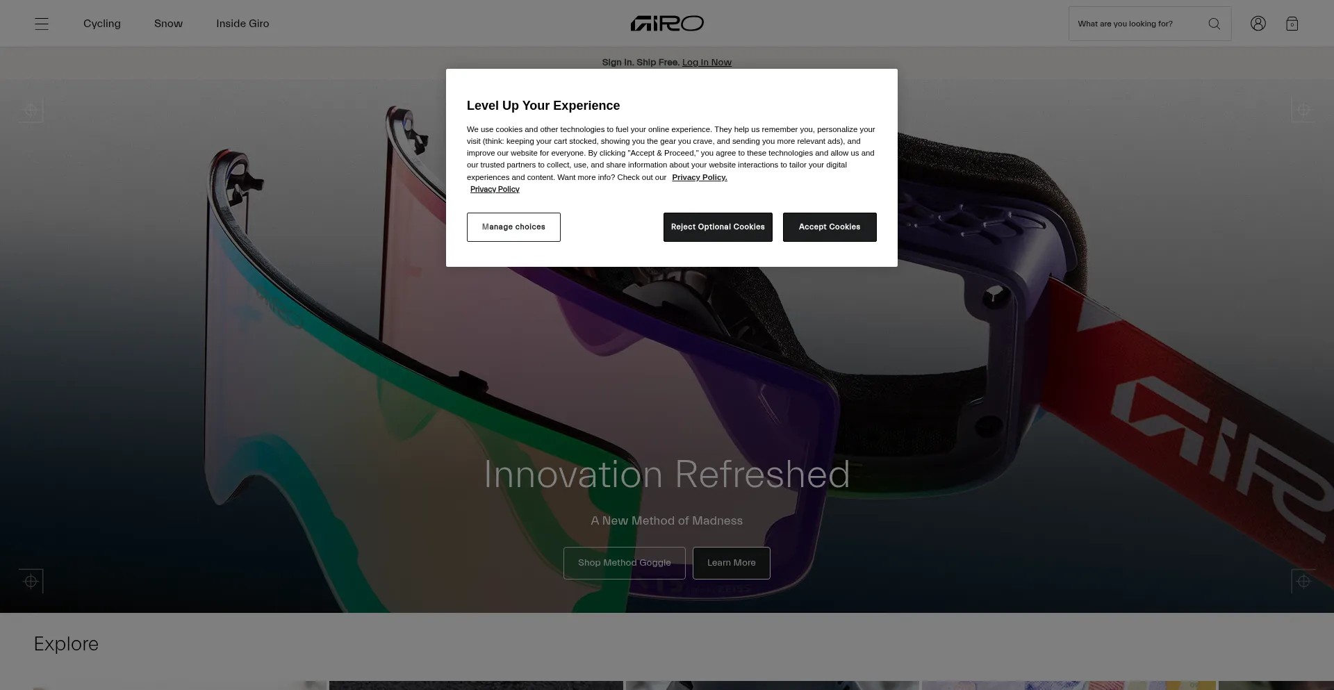 该网站实现符合GDPR或CCPA等隐私法规的cookie同意机制。这表明 giro.com 遵守数据保护标准并为用户提供对个人数据收集实践的控制。