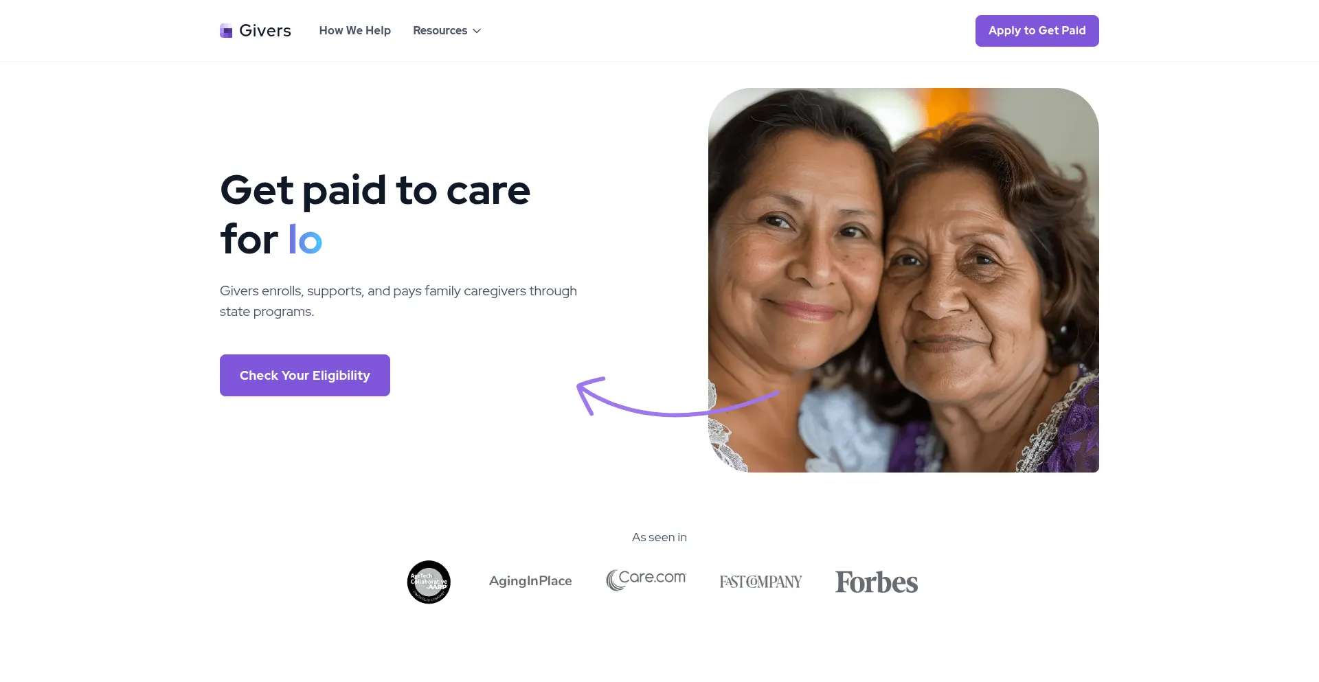 Givers enrolls, supports, and pays family caregivers through state programs so they can focus on what truly matters—caring for their loved one.