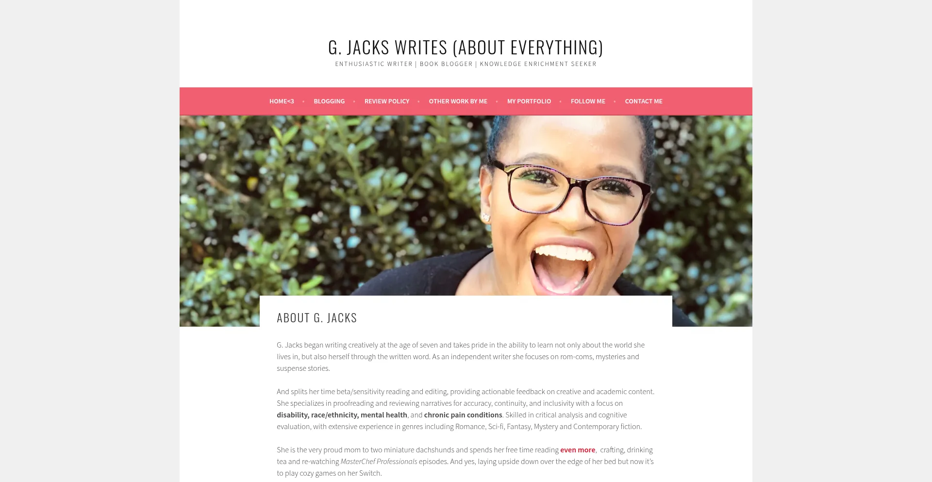 G. Jacks Writes (About Everything) – Enthusiastic Writer | Book Blogger | Knowledge Enrichment Seeker
