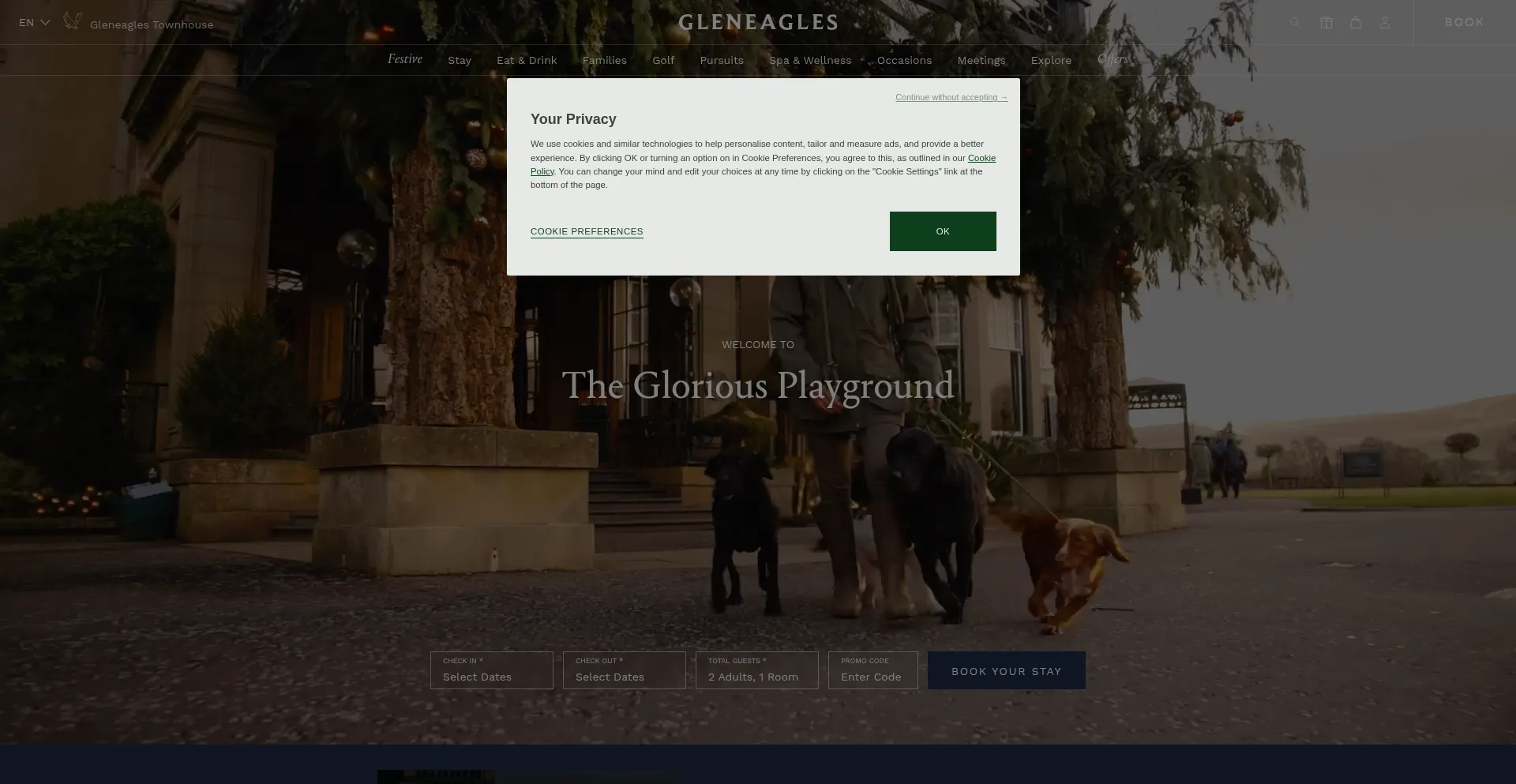 该网站实现符合GDPR或CCPA等隐私法规的cookie同意机制。这表明 gleneagles.com 遵守数据保护标准并为用户提供对个人数据收集实践的控制。