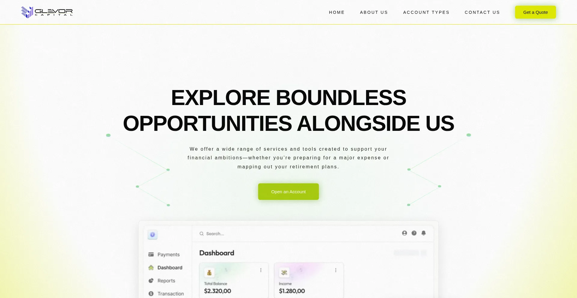 该网站实现数据收集表单,请求个人信息,包括姓名、电子邮件地址、电话号码或其他敏感详细信息。用户应验证 glevorcapital.com 的合法性并在提交个人数据前查看隐私政策。