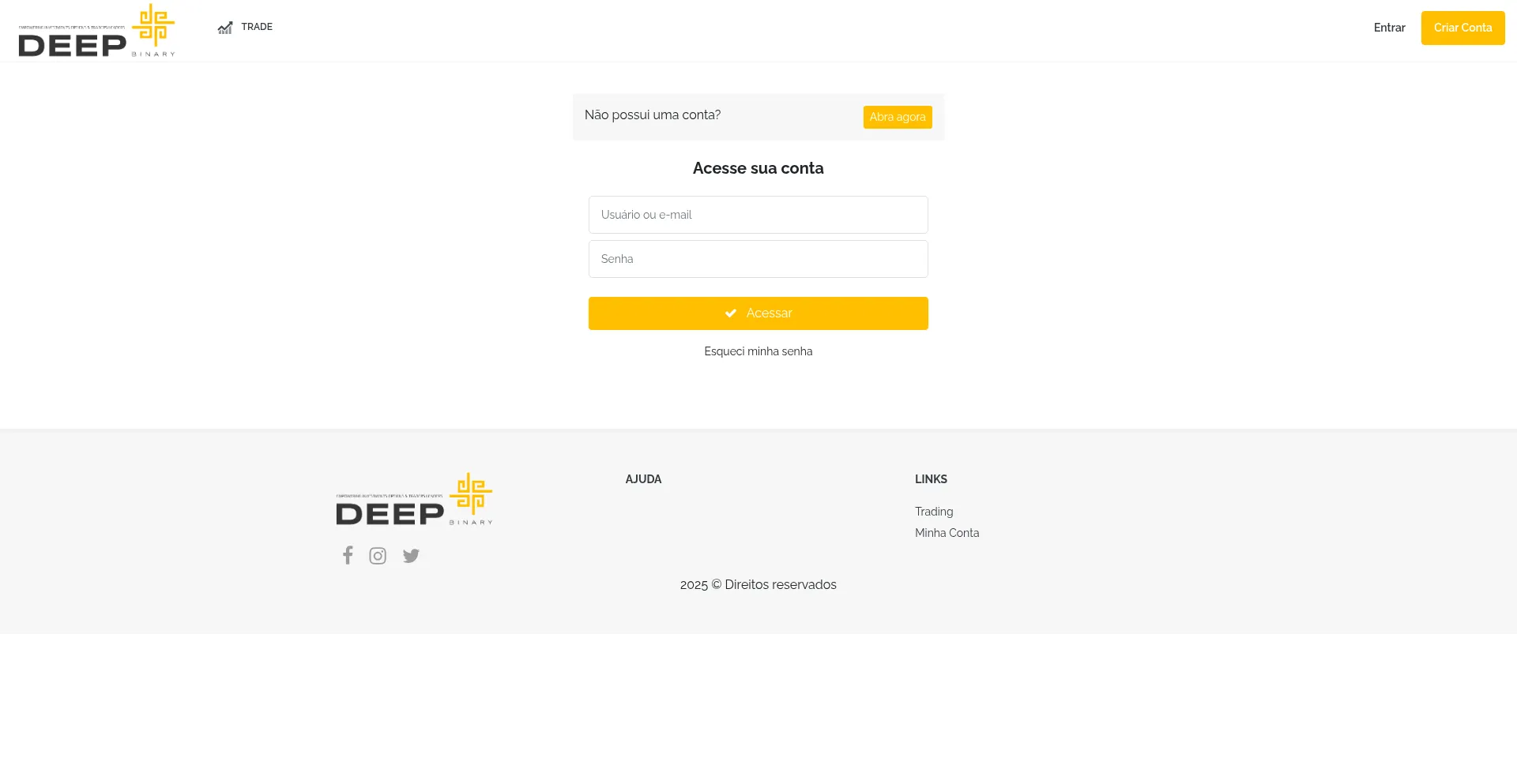 Comece agora mesmo a operar com DEEP BINARY. Plataforma de trading robusta e pagamentos rápidos.