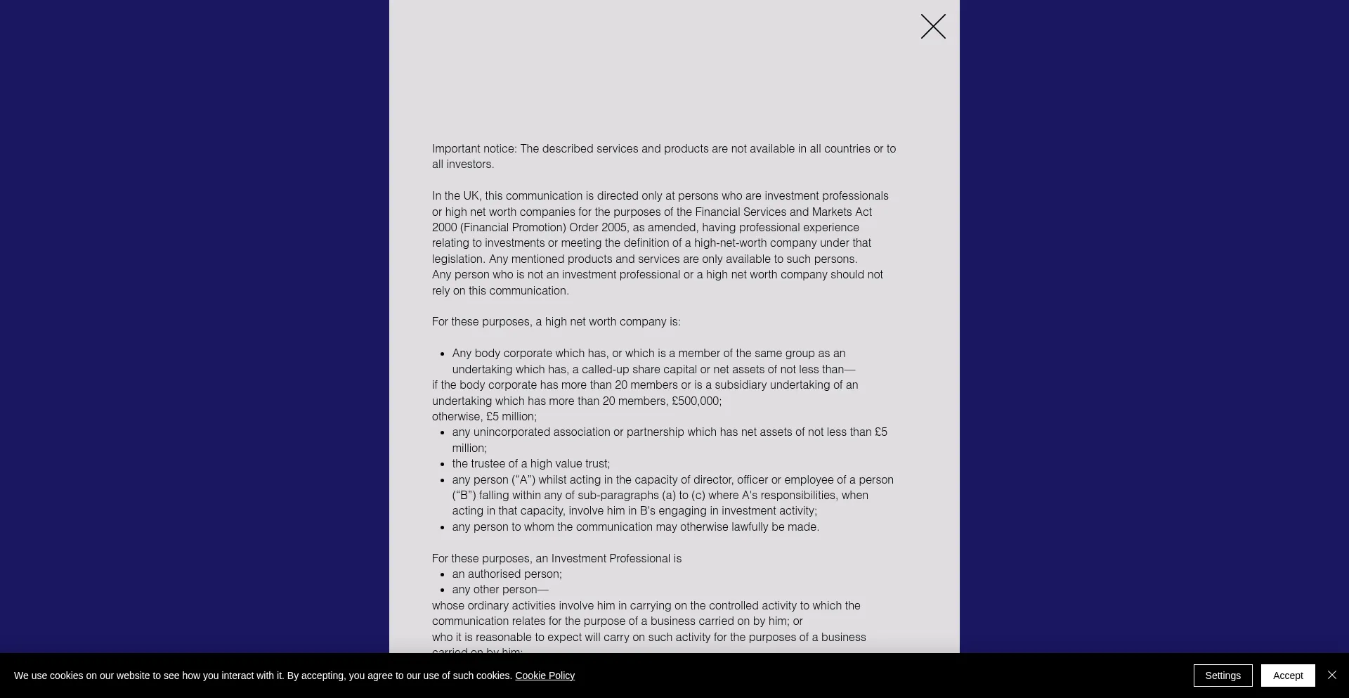 此网站提供金融服务,包括投资管理、财富咨询或财务规划解决方案。服务可能涵盖投资组合管理、投资机会、财务咨询或为个人和机构客户提供的资产增长策略。