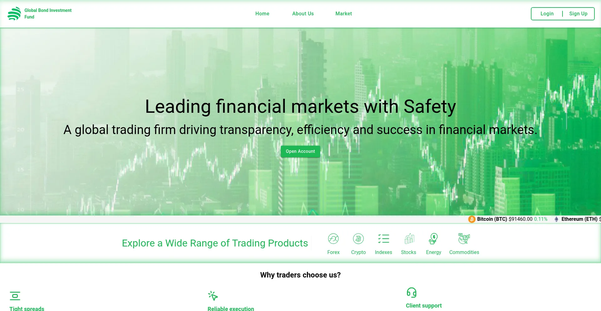 该网站实现数据收集表单,请求个人信息,包括姓名、电子邮件地址、电话号码或其他敏感详细信息。用户应验证 globalbondinvestment.com 的合法性并在提交个人数据前查看隐私政策。