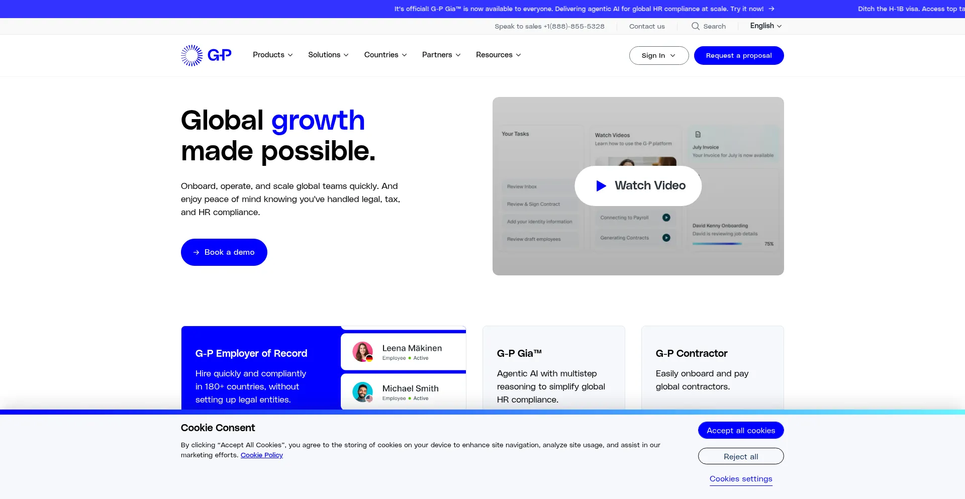 Hire, onboard, manage, and pay global teams with G-P employment solutions. Expand into 180+ countries quickly—no entity required. Grow your business worldwide.