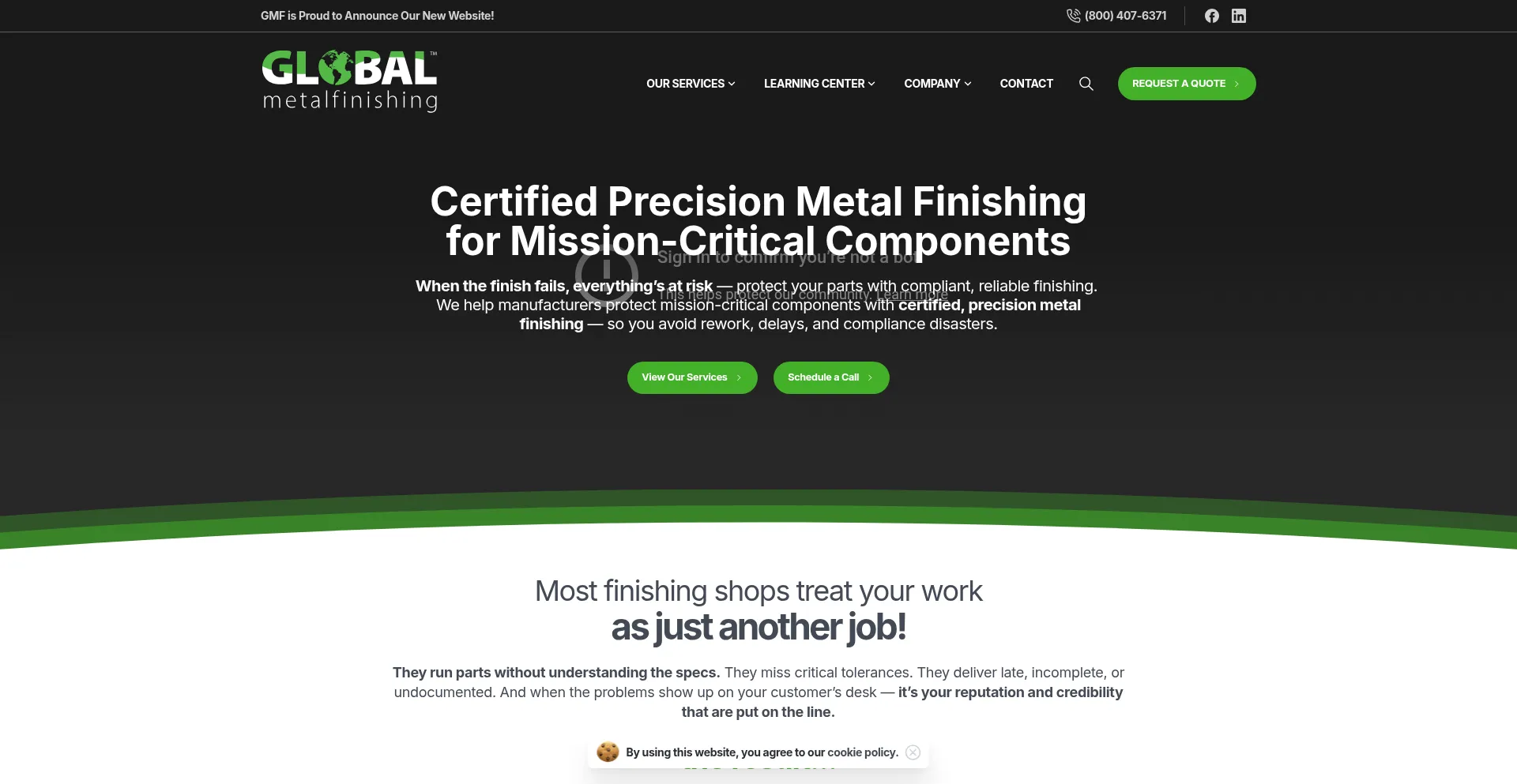 该网站实现符合GDPR或CCPA等隐私法规的cookie同意机制。这表明 globalmetalfinishing.com 遵守数据保护标准并为用户提供对个人数据收集实践的控制。