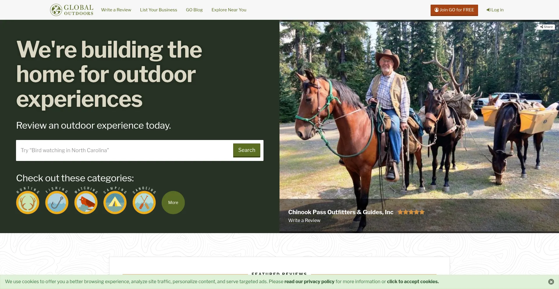 globaloutdoors.com 提供 Android 设备移动应用程序,表明平台存在已扩展到网络服务之外。