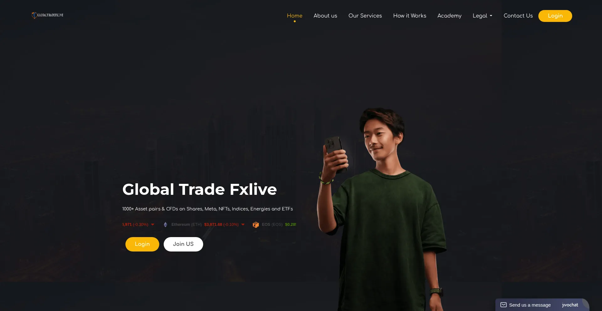 该网站实现数据收集表单,请求个人信息,包括姓名、电子邮件地址、电话号码或其他敏感详细信息。用户应验证 globaltradefxlive.com 的合法性并在提交个人数据前查看隐私政策。