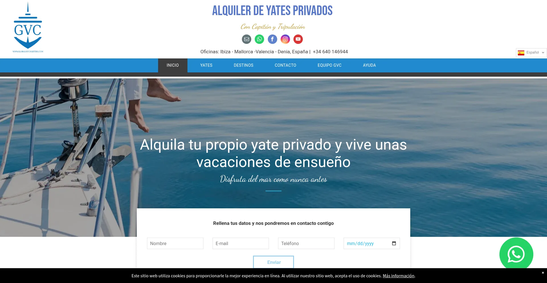 Charter un yate privado con tripulación por Valenica, Ibiza, Mallorca, Denia y todo el Mediterráneo y Caribe. Veleros, Catamarans, Yates de motor y Super yates