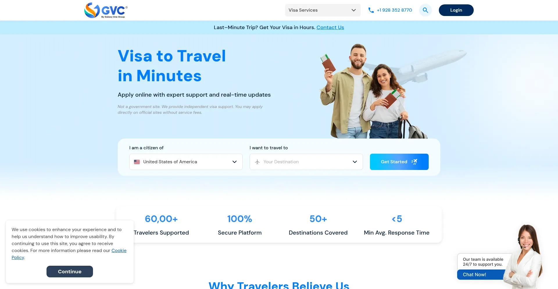 该网站实现符合GDPR或CCPA等隐私法规的cookie同意机制。这表明 globalvisacorp.com 遵守数据保护标准并为用户提供对个人数据收集实践的控制。