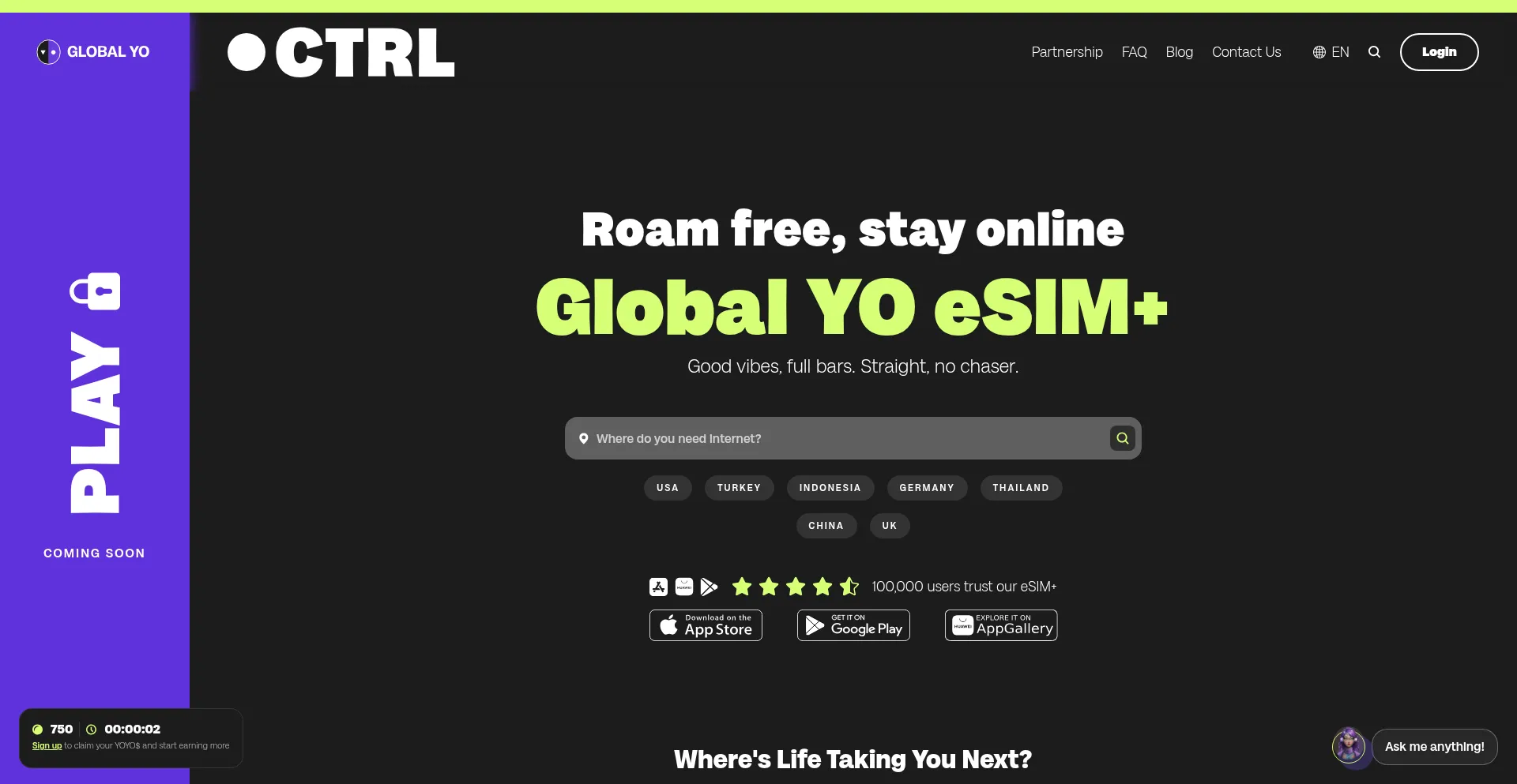 Connect globally with Global YO eSIM. Get high-speed data, travel guides, and entertainment in over 200 countries. Seamless travel tech at your fingertips.