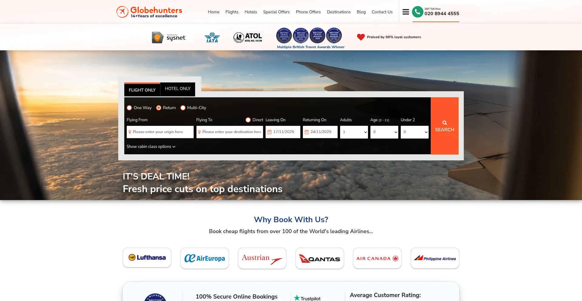Find cheap flights, airline tickets, hotels and more with Globehunters with 1000's of holiday destinations to suit any budget.