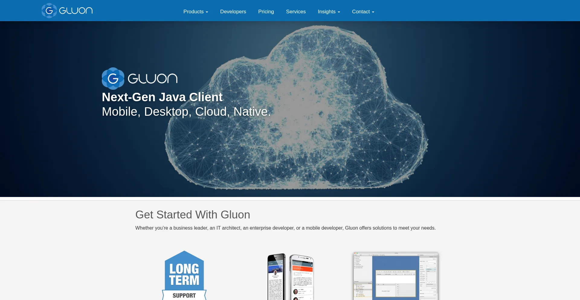 gluonhq.com 使用 Bootstrap,这是一个广泛采用的开源响应式网页开发框架。Bootstrap 通过标准化组件和样式实现移动友好界面的高效创建。