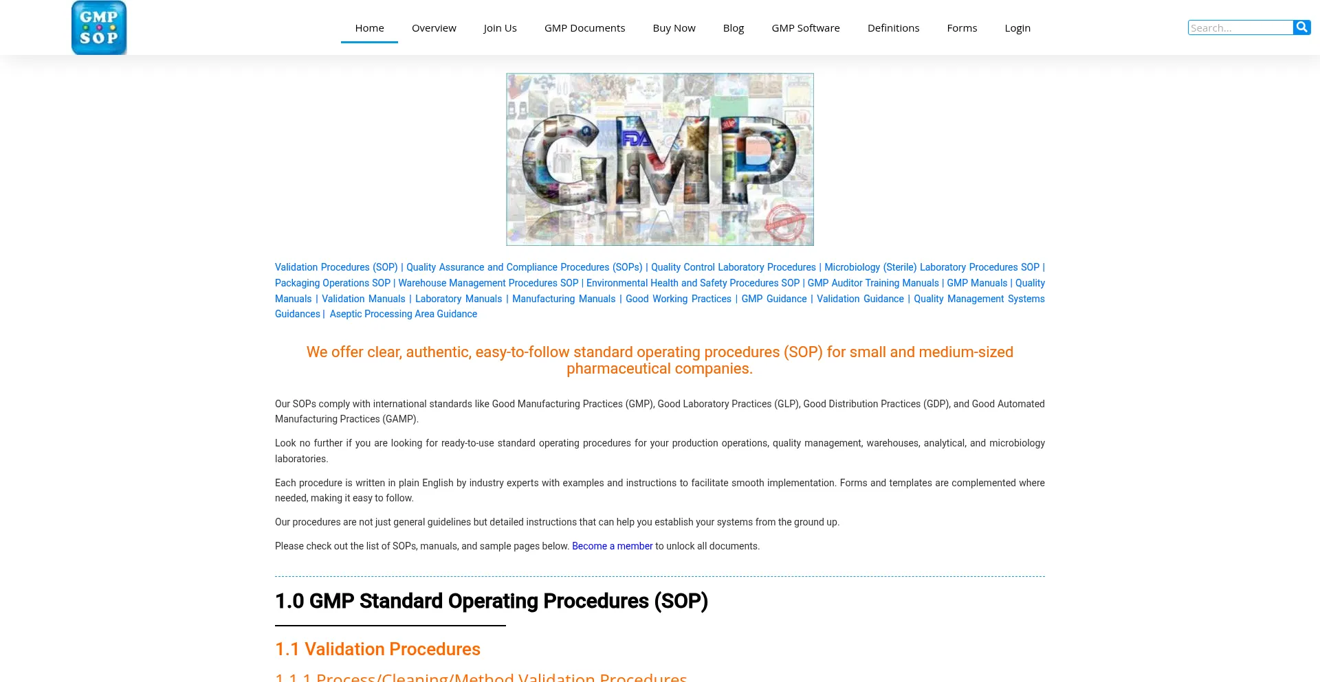 Find comprehensive standard operating procedures (SOP) for good manufacturing practice, quality assurance, validation, quality control, and warehousing.