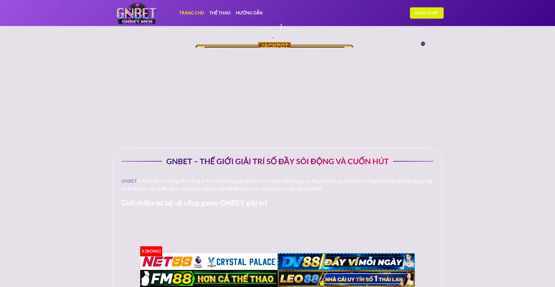 GNBET là nhà cái cá cược trực tuyến uy tín hàng đầu 2025, mang đến trải nghiệm đỉnh cao với thể thao, casino, slots, bắn cá, nổ hũ tỷ lệ ...