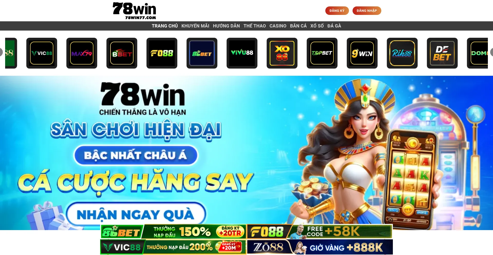 78WIN là nhà cái cá cược uy tín với hàng loạt sảnh cược đỉnh cao, bảo mật an toàn, nạp rút nhanh chóng và khuyến mãi hấp dẫn dành cho mọ...