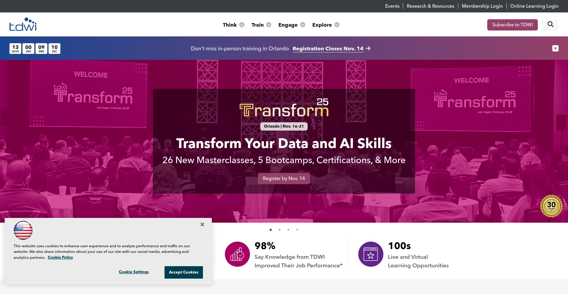 Become an industry leader with TDWI's data analytics courses and certifications. Improve your skills in data science, AI, machine learning, and more.