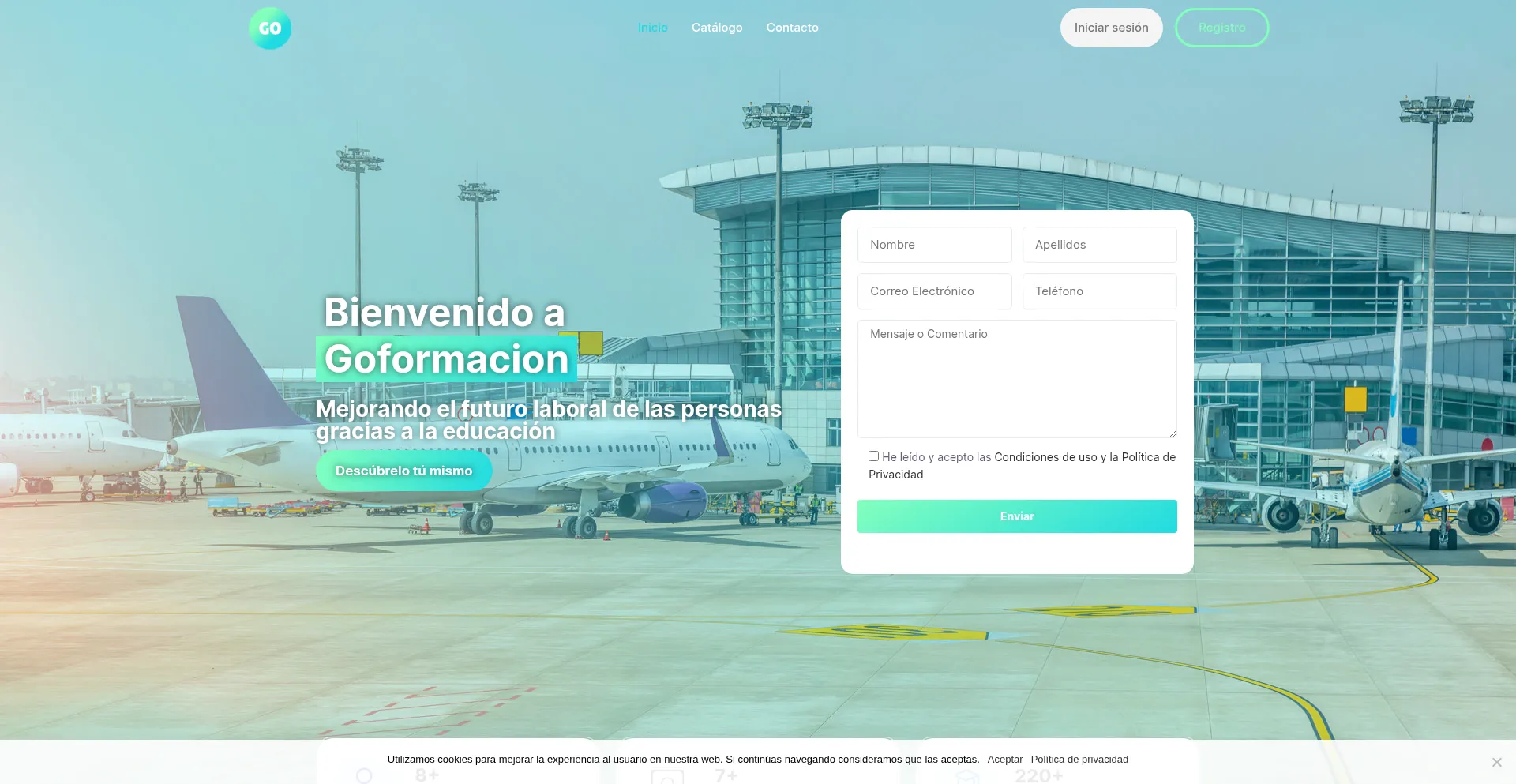 该网站实现数据收集表单,请求个人信息,包括姓名、电子邮件地址、电话号码或其他敏感详细信息。用户应验证 go-formacion.com 的合法性并在提交个人数据前查看隐私政策。