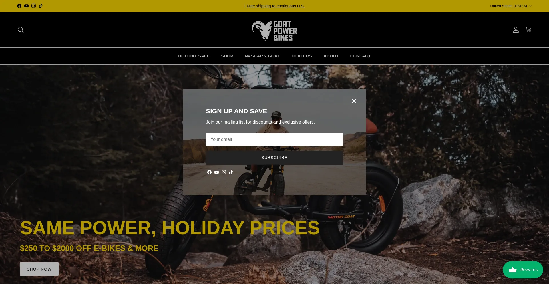 网站上存在社交媒体链接表明 goatpowerbikes.com 在社交媒体上维护官方账户,这是可信度和参与度的积极信号。