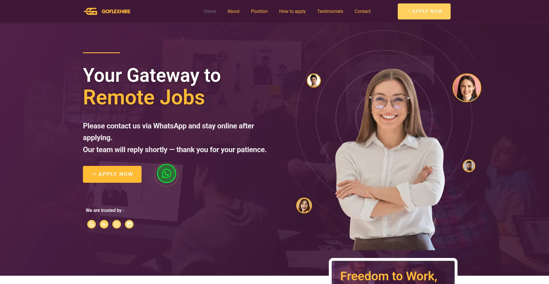 帮助保护他人,快在社交媒体上分享此页面吧!知道goflexhire.work的人越多,骗子就越难得逞。 通过在社交媒体上分享此页面,帮助更多人发现可靠的goflexhire.work吧!