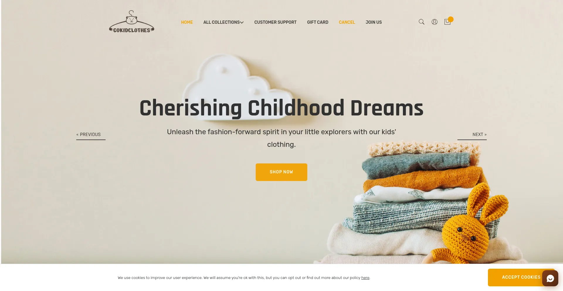 该网站实现符合GDPR或CCPA等隐私法规的cookie同意机制。这表明 gokidclothes.com 遵守数据保护标准并为用户提供对个人数据收集实践的控制。