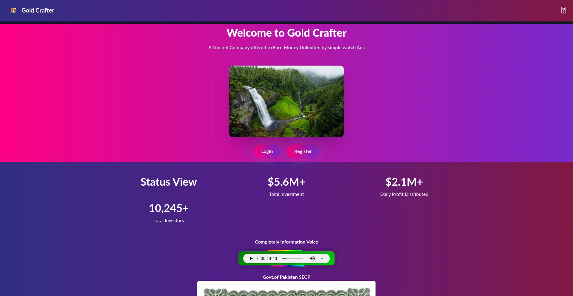 Gold-crafter.com 运营欺诈平台,旨在通过推广虚假产品、服务或投资机会的欺骗性方案提取个人信息和金融资产。