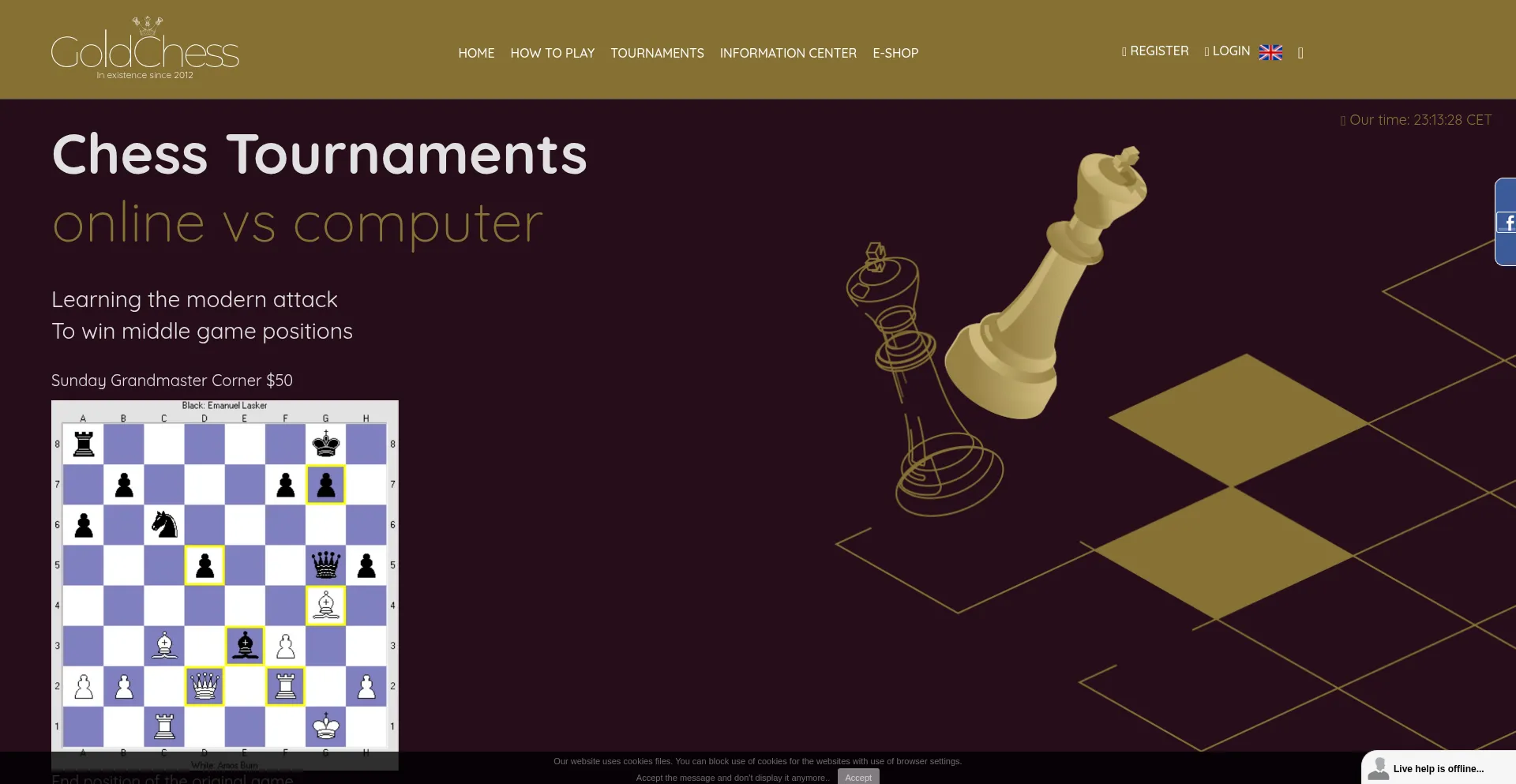 GoldChess is a game awarding intelligence and creative work of human brain. Daily online-open tournaments, for chess players from all over the world. Best chess Training Box.