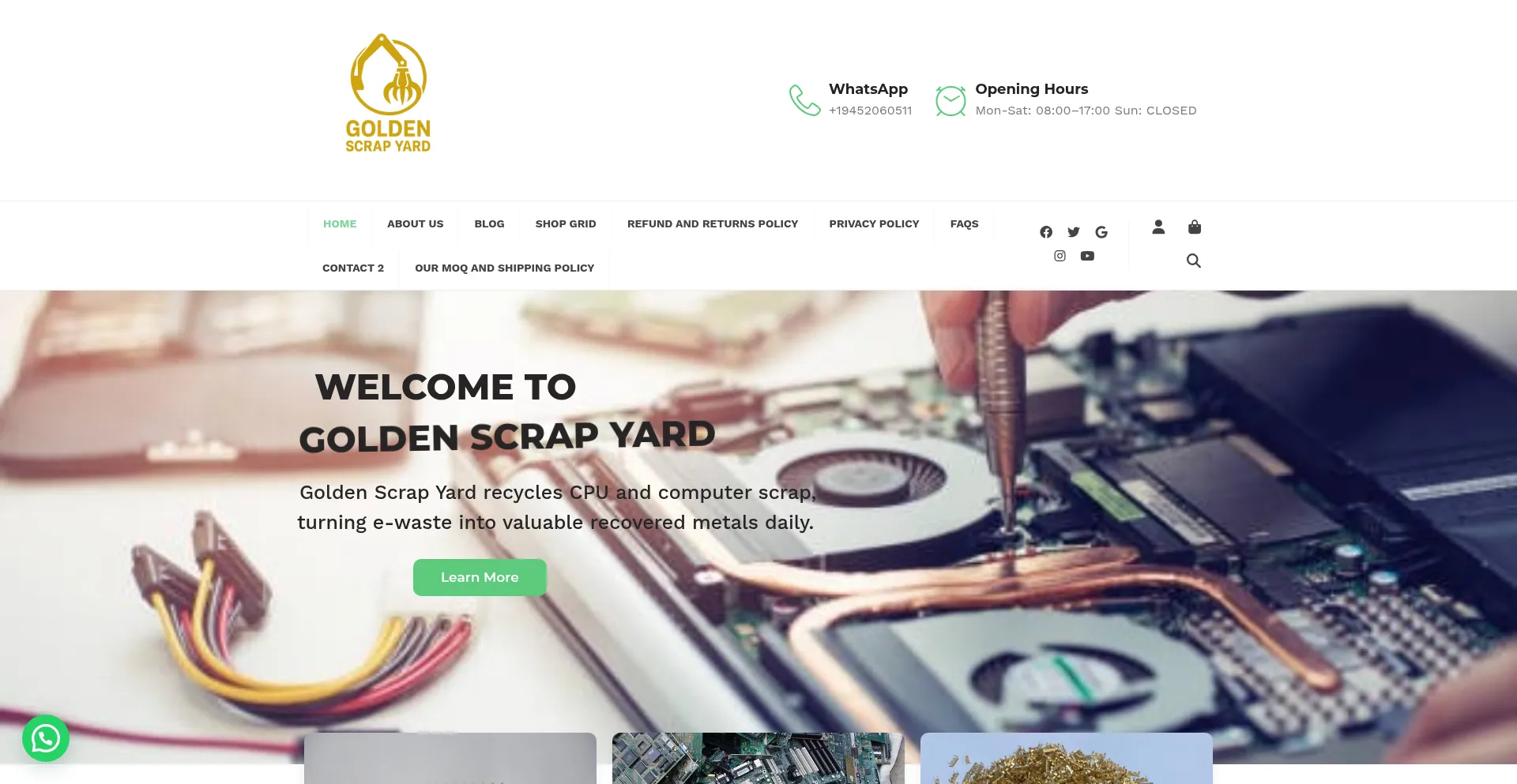 goldenscrapyard.com 使用 Bootstrap,这是一个广泛采用的开源响应式网页开发框架。Bootstrap 通过标准化组件和样式实现移动友好界面的高效创建。