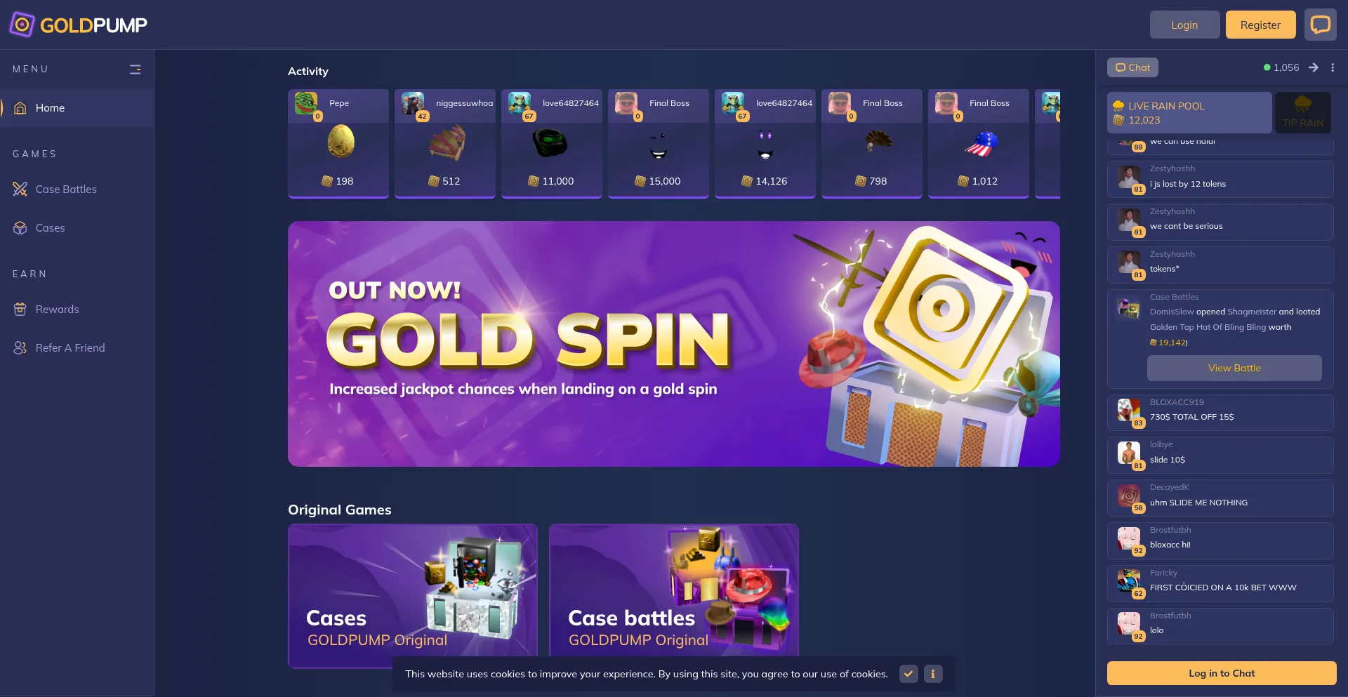 GOLDPUMP is the new RBXGold. Same trusted team, now with better rewards, bigger wins, and new features! Join the best site for legendary limiteds unboxing, stacked daily cases, ...
