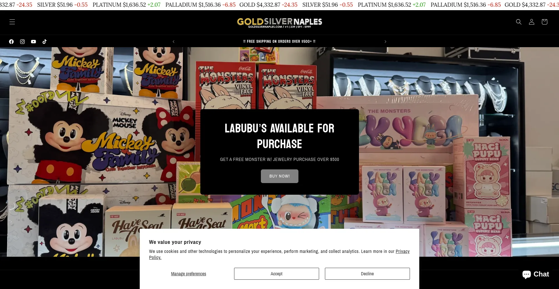 该网站实现符合GDPR或CCPA等隐私法规的cookie同意机制。这表明 goldsilvernaples.com 遵守数据保护标准并为用户提供对个人数据收集实践的控制。