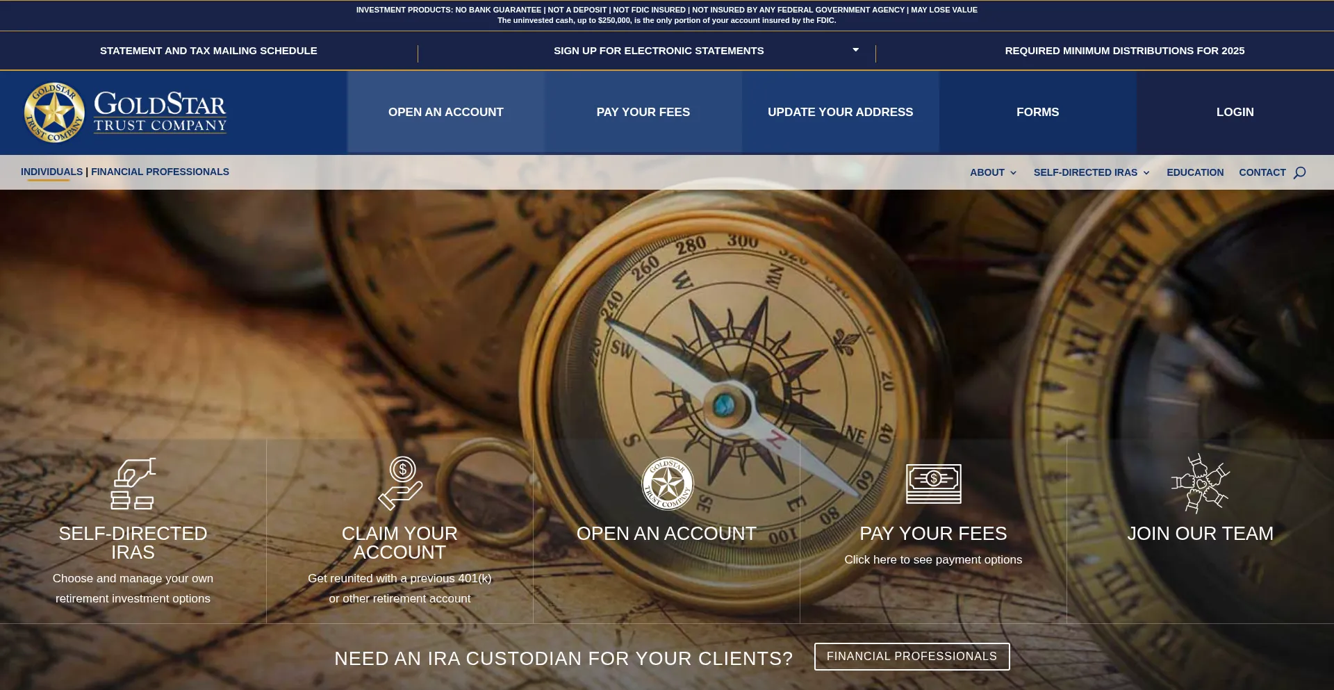Custodial services for self-directed IRAs, - GoldStar Trust