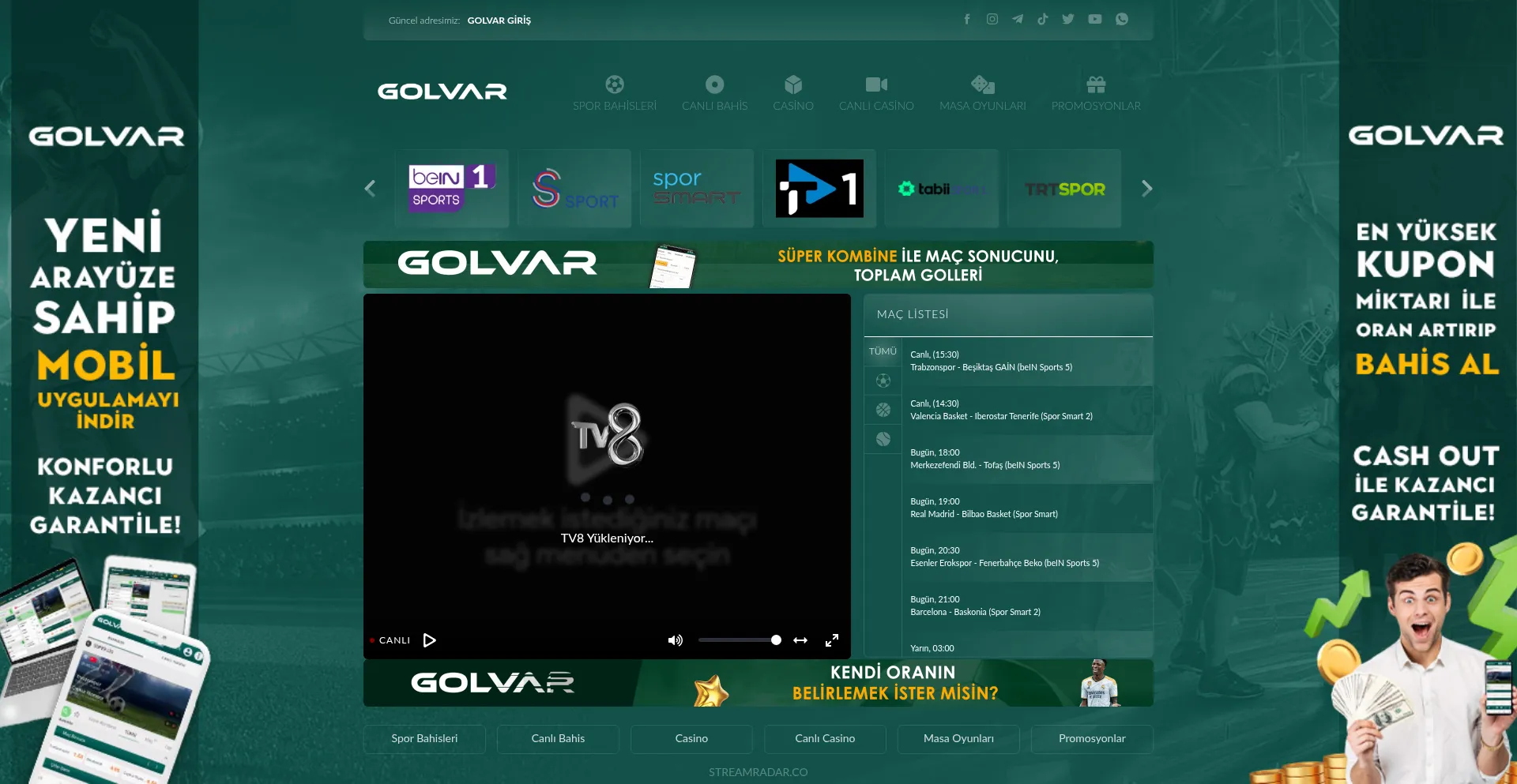 Golvar TV ile maçları canlı olarak bedava ve kesintisiz izleyebilirsiniz. Spor haberleri ve maç özetleri de sitemizde mevcuttur.