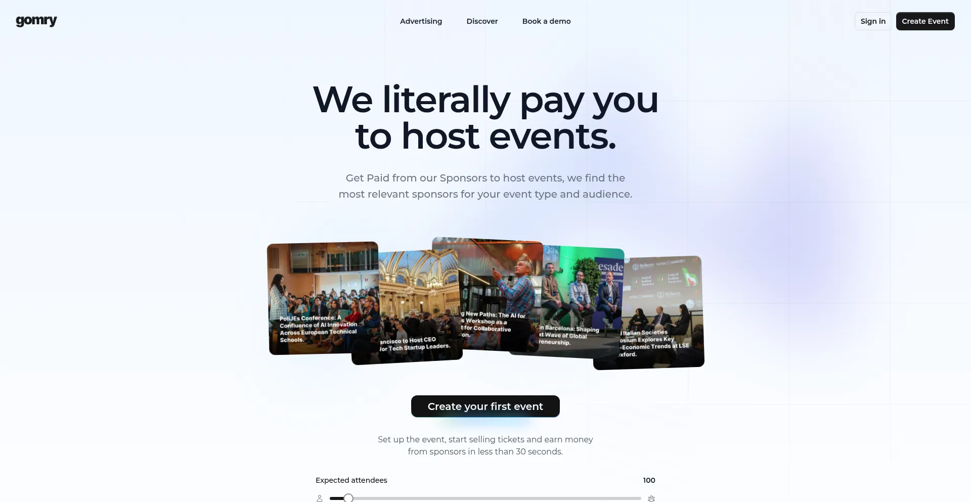 We literally pay you to host events. How? By automatically matching your event with relevant sponsors. How much? Click to get an instant estimate.