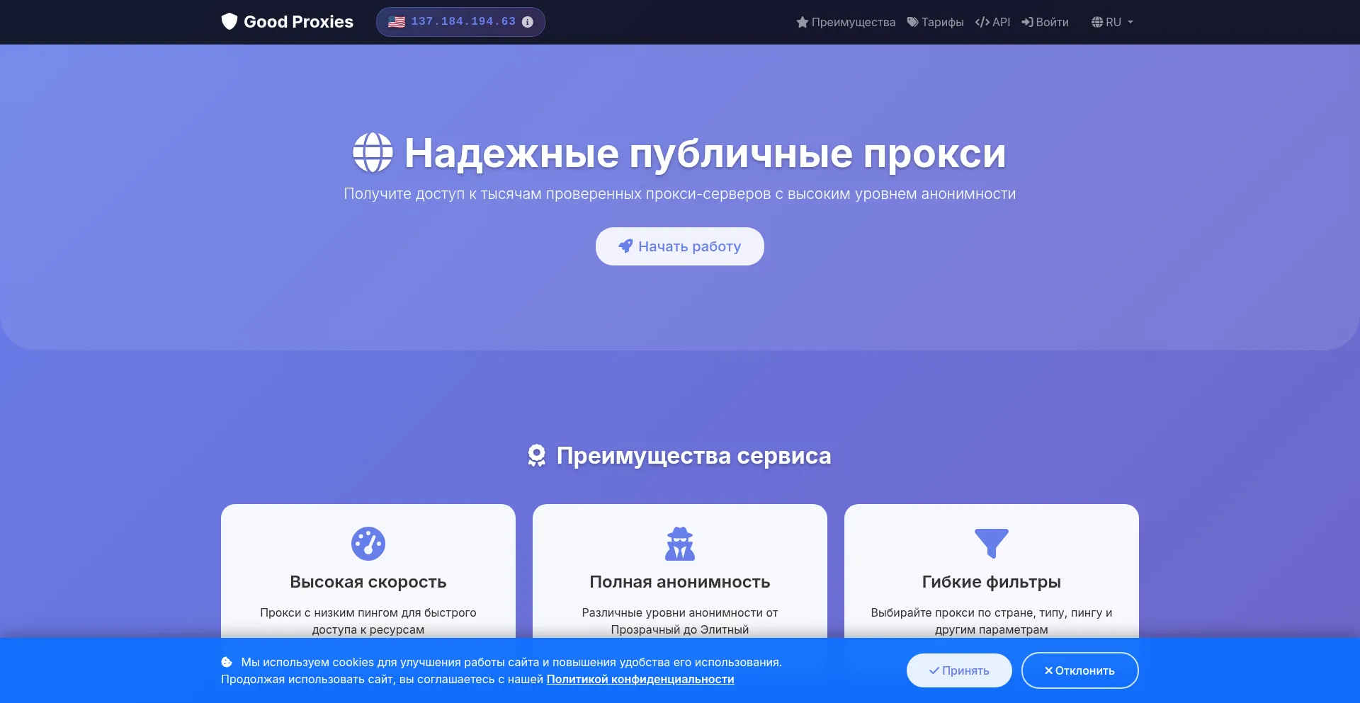 Good Proxies - бесплатные и премиум прокси-серверы. HTTP, HTTPS, SOCKS4, SOCKS5 прокси с высокой скоростью и аноним�...