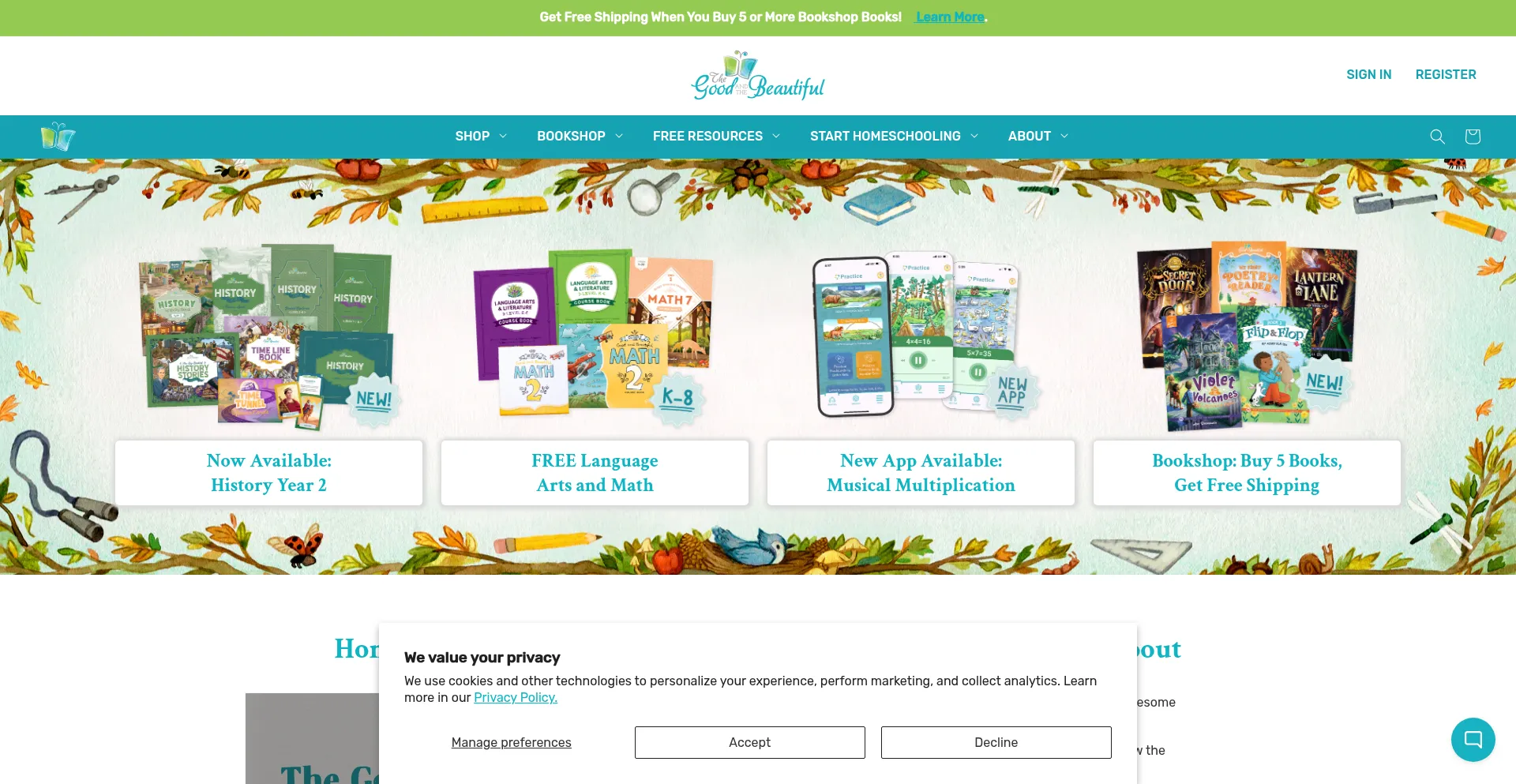 The Good and the Beautiful is a Christian homeschool curriculum company offering Language Arts, Math, Science History, and elective courses.