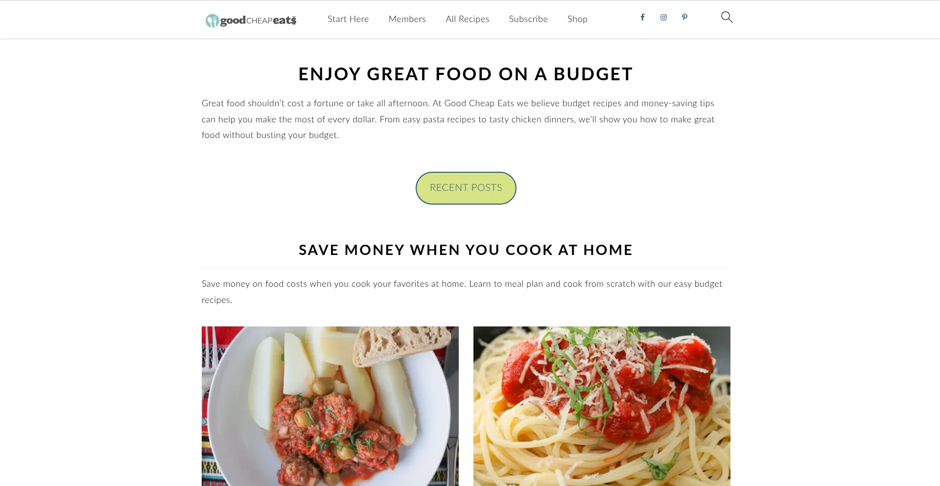 网站上存在社交媒体链接表明 goodcheapeats.com 在社交媒体上维护官方账户,这是可信度和参与度的积极信号。