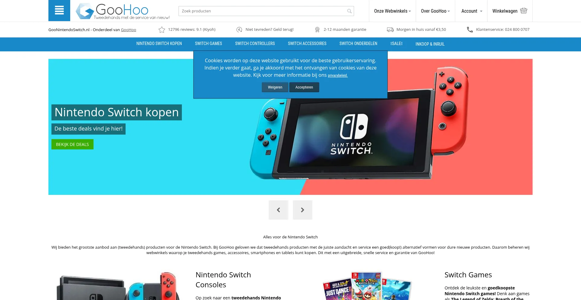 分析表明 goonintendoswitch.nl 作为电子商务平台运营,促进商品或服务的在线交易。该网站实现了购物车功能、支付处理系统和产品目录功能,这些是商业零售运营的典型特征。