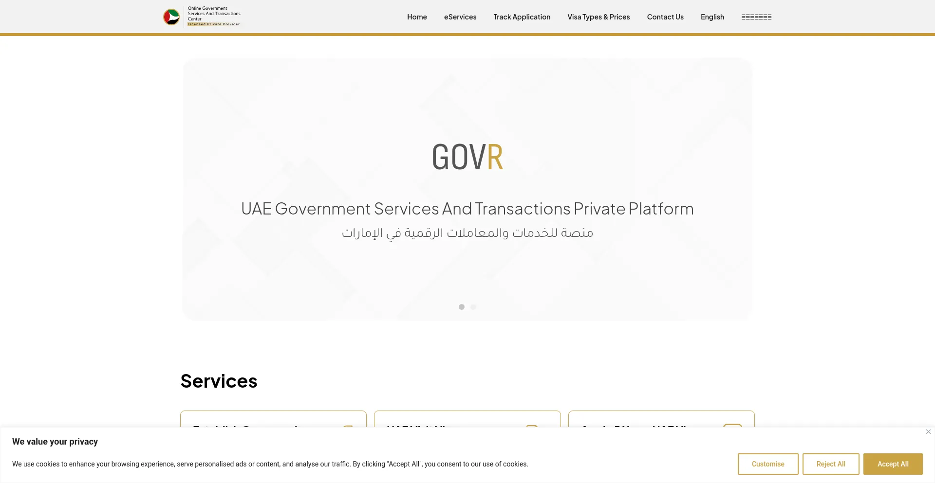 该网站实现符合GDPR或CCPA等隐私法规的cookie同意机制。这表明 govr.ae 遵守数据保护标准并为用户提供对个人数据收集实践的控制。