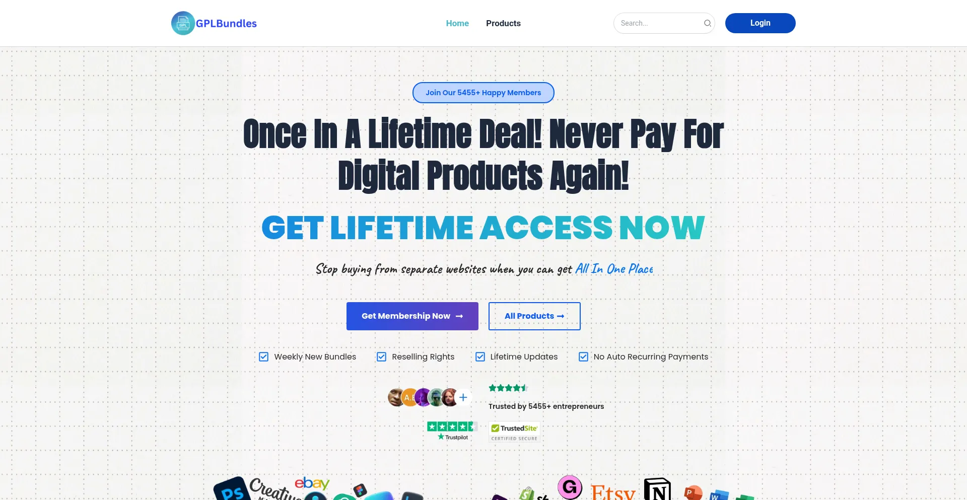 Join Our 5455+ Happy Members Once In A Lifetime Deal! Never Pay For Digital Products Again! Get Lifetime Access Now Stop buying from separate websites when you can get All In On...