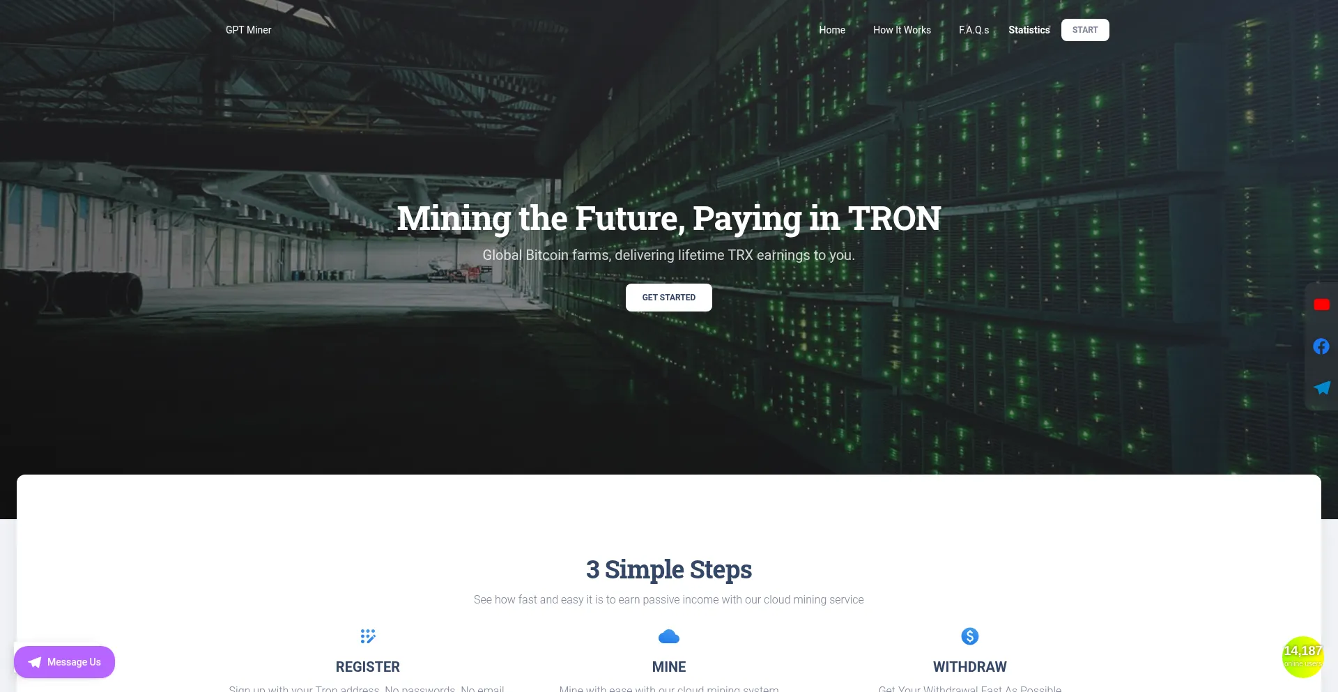 网站 gptminer.cc 可能提供云挖矿服务或加密货币挖矿投资。一些平台提供合法的挖矿租赁服务,而其他平台可能使用虚假的挖矿仪表板来显示无法提取的虚拟收益。