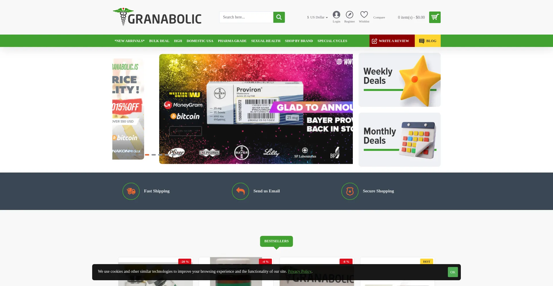 该网站利用流行产品名称和品牌来吸引流量并产生用户兴趣。这些产品可能通过促销活动或折扣策略提供,旨在增加 granabolic.is 的访客参与度和转化率。