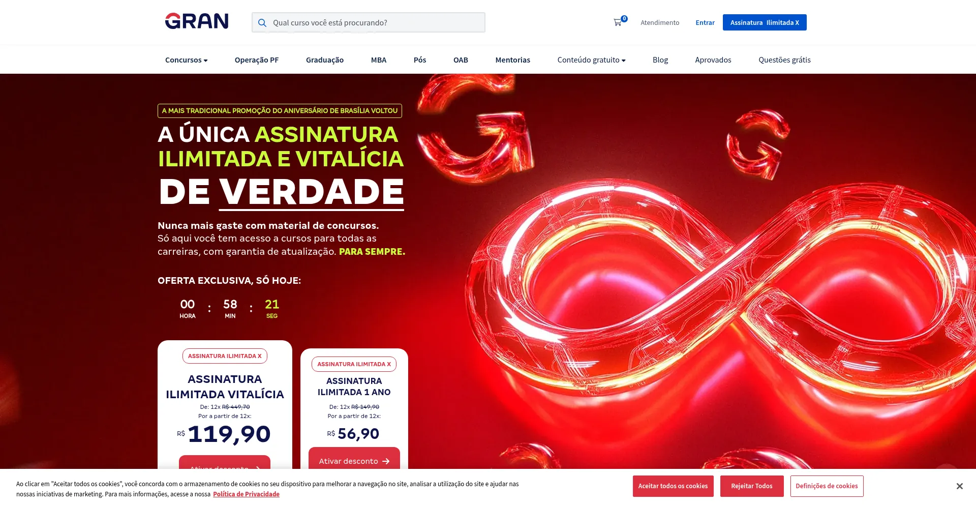 该网站实现符合GDPR或CCPA等隐私法规的cookie同意机制。这表明 grancursosonline.com.br 遵守数据保护标准并为用户提供对个人数据收集实践的控制。