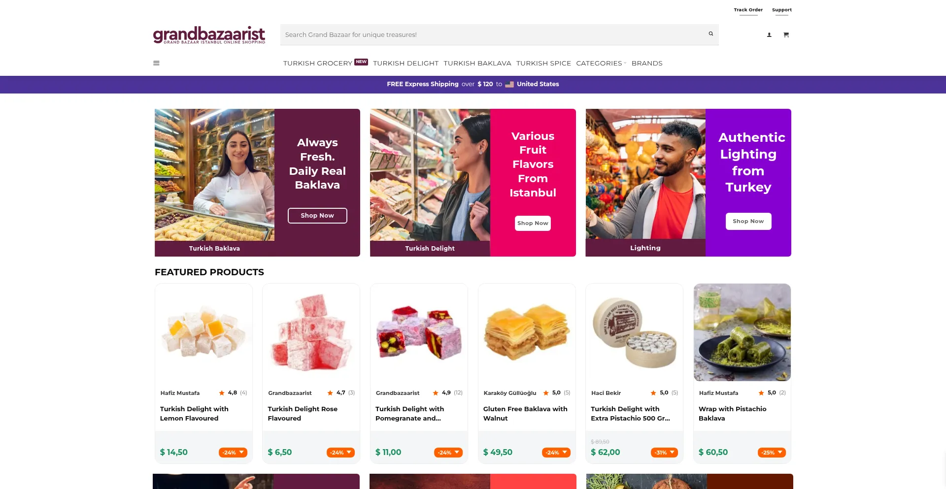 Grand Bazaar Online Shopping İstanbul Turkish Bazaar with Turkish Baklava, Turkish Delight, Buy Turkish Coffee. All items belonging to Turkey