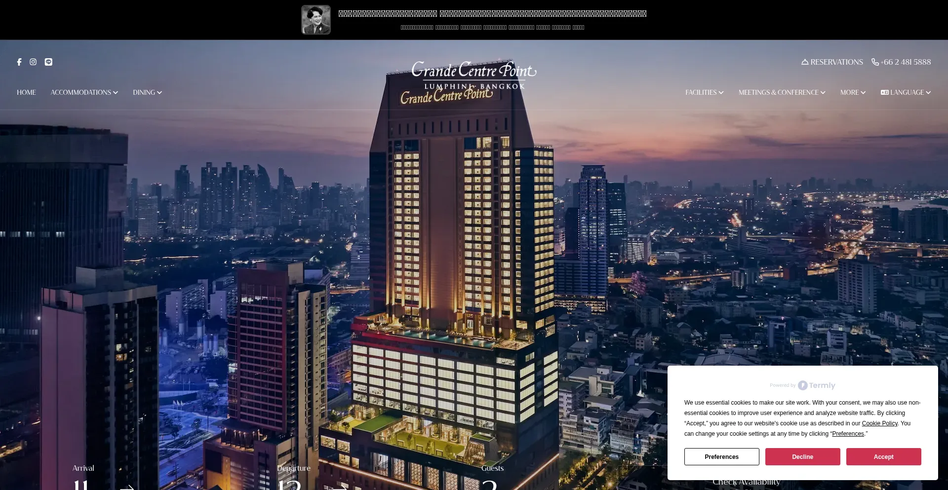该网站实现符合GDPR或CCPA等隐私法规的cookie同意机制。这表明 grandecentrepointlumphini.com 遵守数据保护标准并为用户提供对个人数据收集实践的控制。