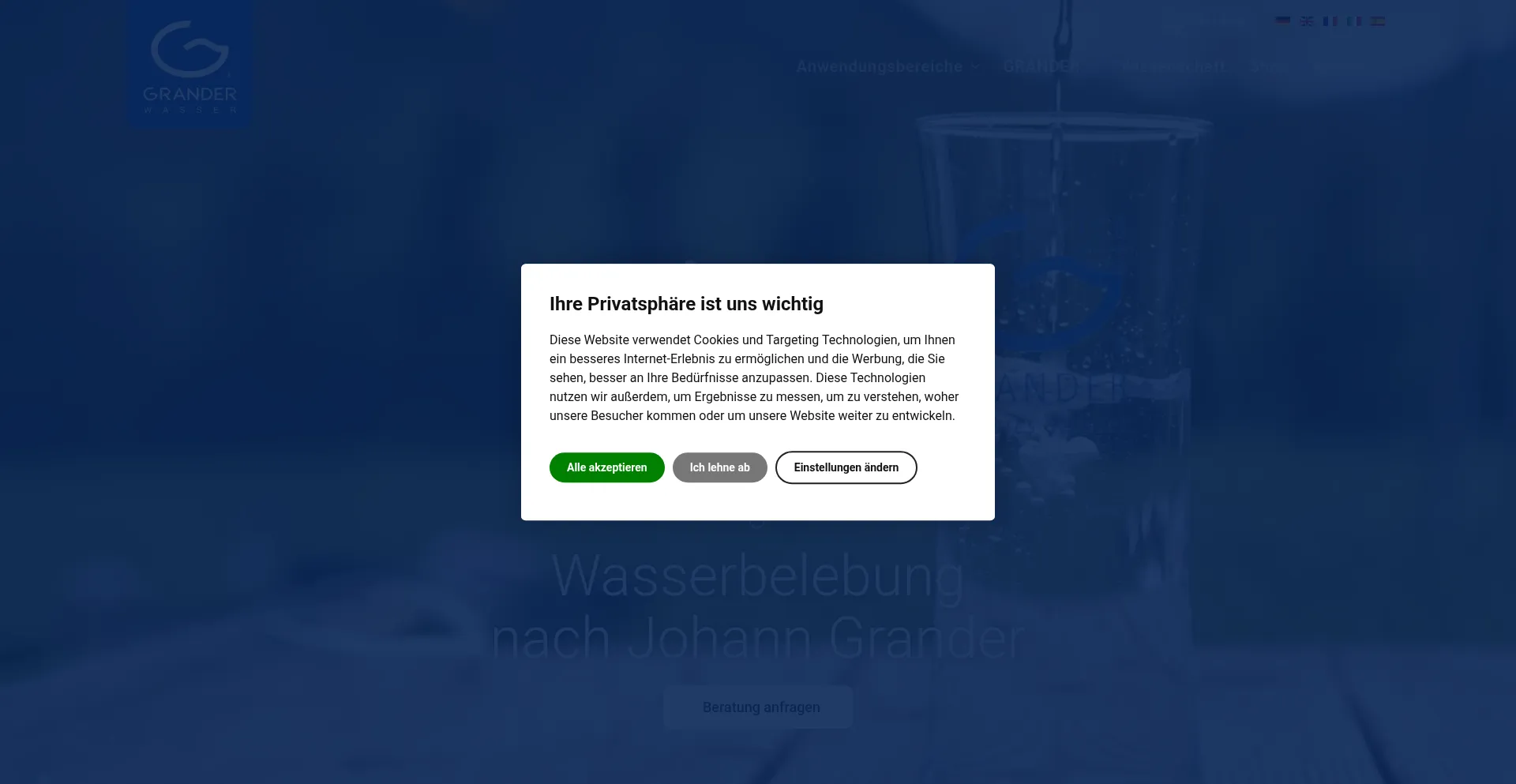 Willkommen bei der GRANDER-Wasserbelebung: Erfahren sie mehr über die Einsatzbereiche der GRANDER-Technologie in Privathaushalten, Hotellerie, Technik und Lan...
